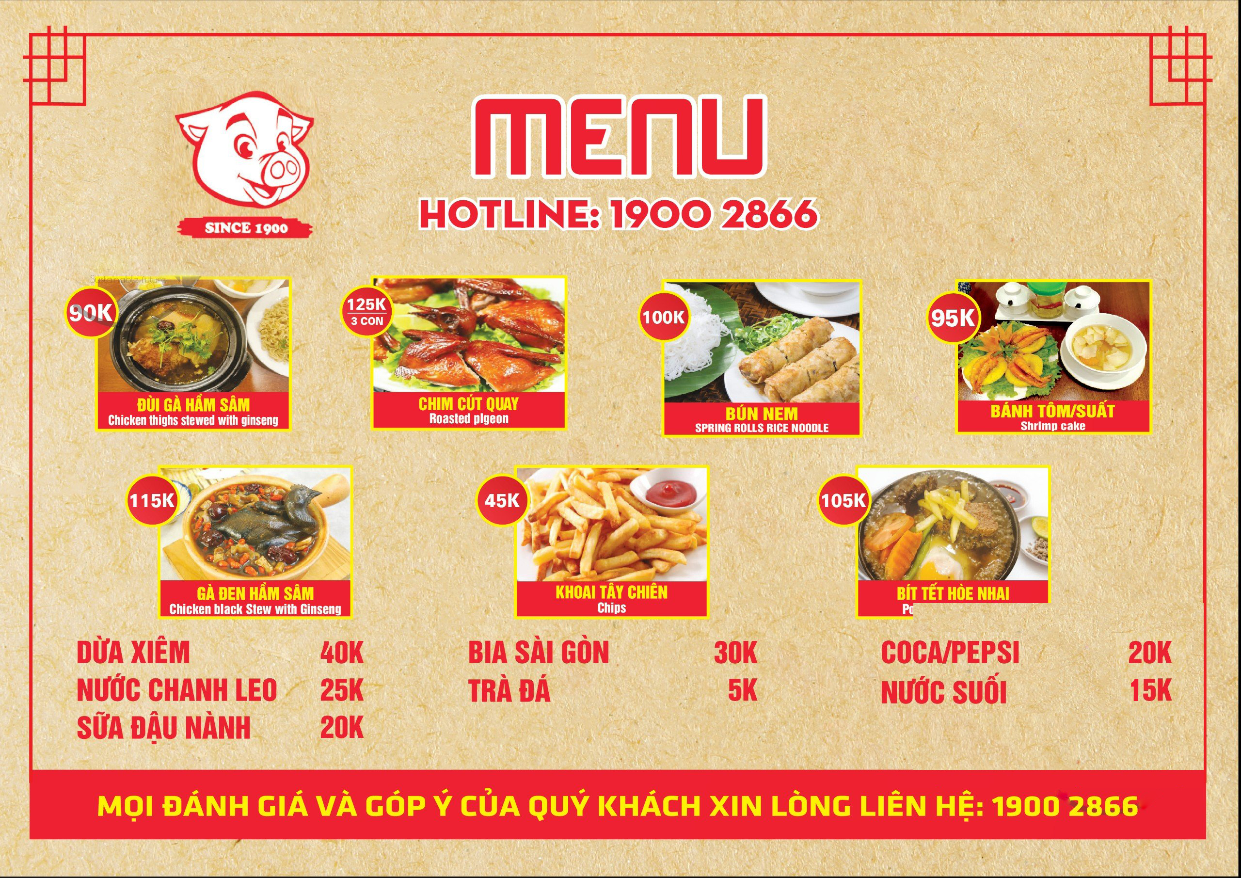 Quý khách tham khảo thực đơn của nhà hàng như sau: